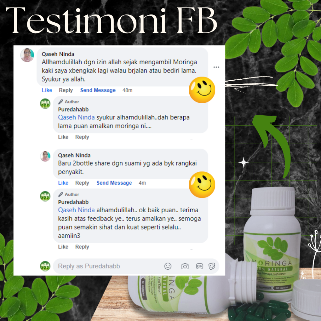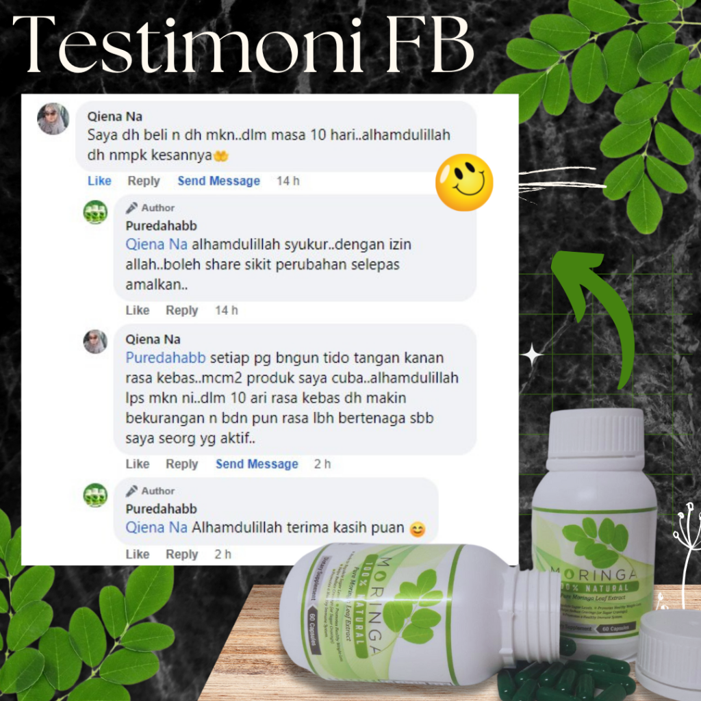 Komen daripada Facebook pelanggan Mengamalkan MORINGA NATURAL